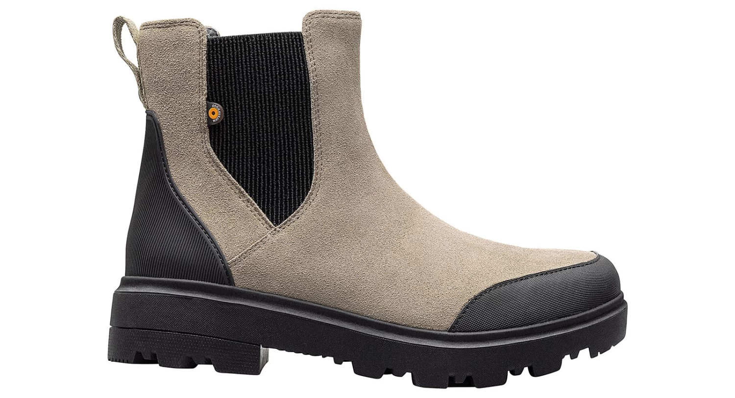 Always waterproof and warm, the Bogs Holly Chelsea Taupe Leather Women’s Bootie walk comfortably, breathe naturally, and combine modern style with rugged construction. Slip-on style with side gore panels and back pull loop for easy on and off. Features DuraFresh bio-technology that activates to fight unwanted odors. Rebound cushioning in midsole provides all-day comfort and energy return.