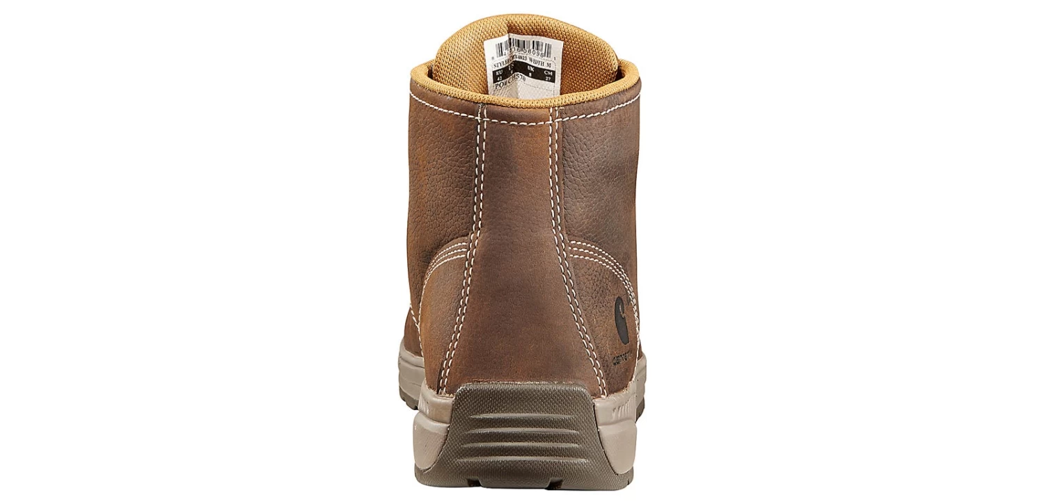 The Carhartt Chukka Men’s Soft Toe Work Shoe has your back. These lightweight boots feature exposed stitching, leather upper, and lace-up closure. The sweat-wicking lining keeps your feet dry and fights odors. The cushioned insole is shock-absorbing, while the padded collar offers extra cushioning. The rubber outsole is slip and oil-resistant while also providing lightweight comfort. The Carhartt Chukka Men’s Soft-Toe Shoe will take your workday to the next level.