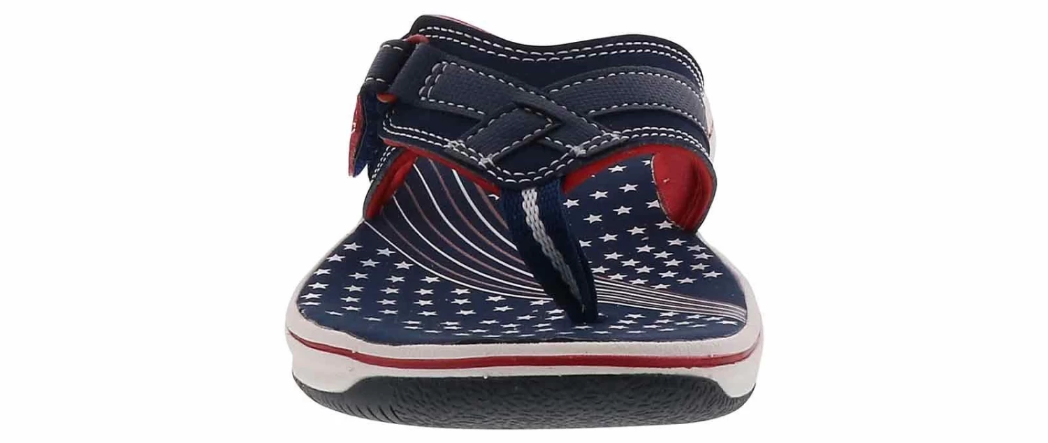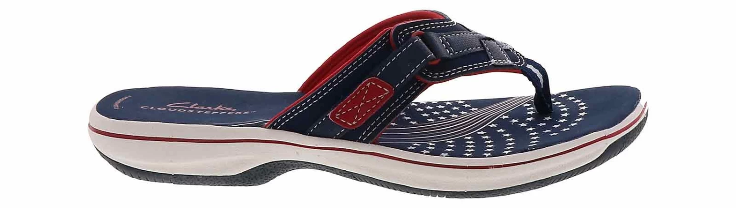 Show your pride and stay comfortable with the Clarks Breeze Sea Cloudsteppers Women’s Sandal! This comfort sandal features an open-toe layout and a hook-and-loop closure that is perfect for on-the-go errands. The cushionsoft footbed supports every step, while the durable outsole provides all the traction you need. The Clarks Breeze Sea Cloudsteppers Women’s Sandal is the best choice to keep you cool and relaxed on warm summer days!