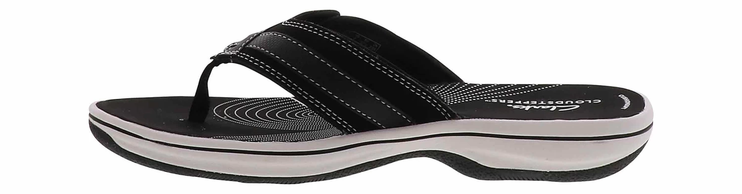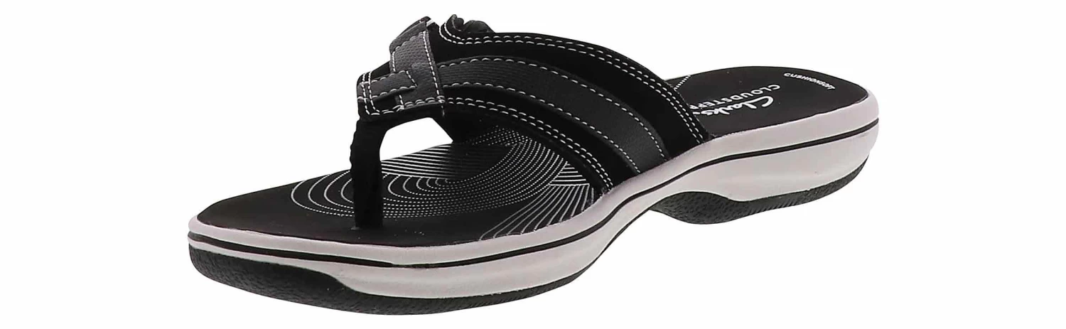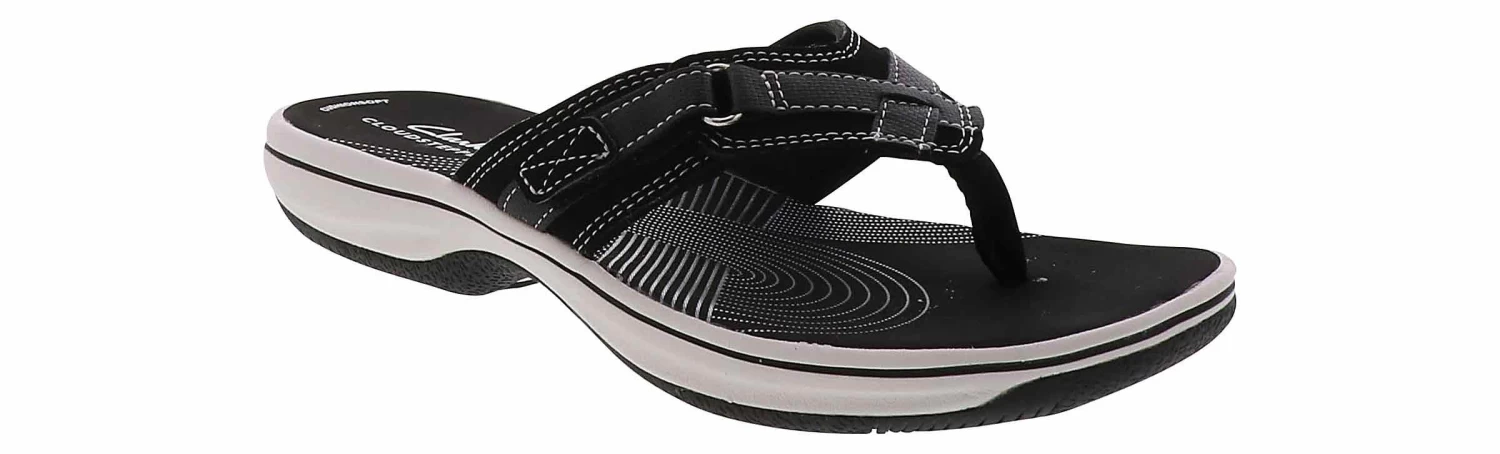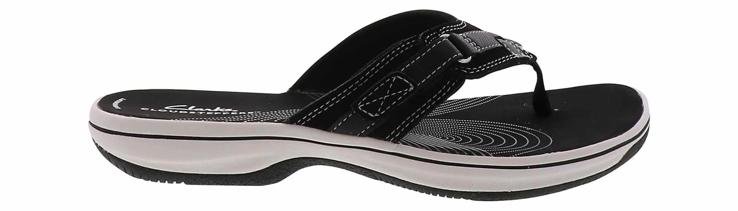 Look beach ready in the Clarks Breeze Sea Women’s Sandal! This style features a comfortable Cloudsteppers footbed for all-day wear and support. The synthetic toe strap has a hook-and-loop closure, adding a secure fit. The traction outsole brings stability on both sand and hard surfaces. Slip into summer with the Clarks Breeze Sea Women’s Sandal!