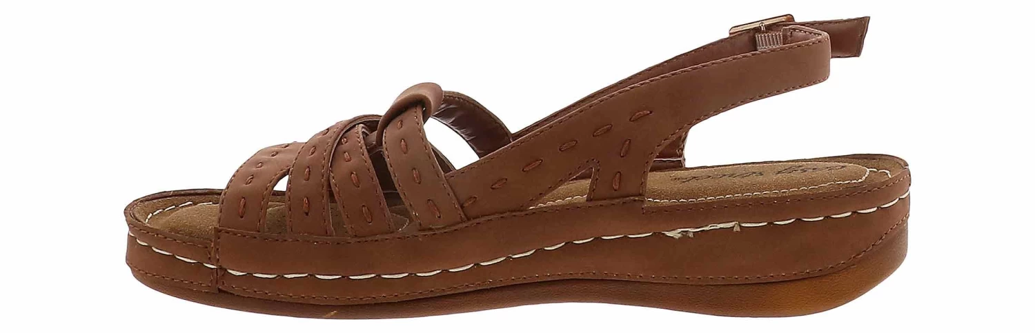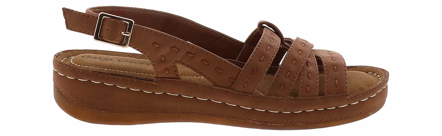 Step into warmer weather wearing the Easy Street Kehlani Women’s Comfort Sandal! This style has a synthetic leather upper decorated with a heel strap and a hook-and-loop closure. The cushioned footbed adds extra comfort and padding, while the outsole is durable is perfect for every occasion. Take on spring and summer wearing the Easy Street Kehlani Women’s Comfort Sandal!