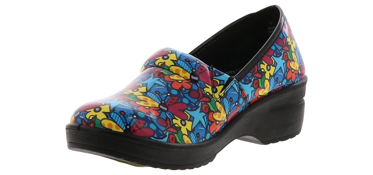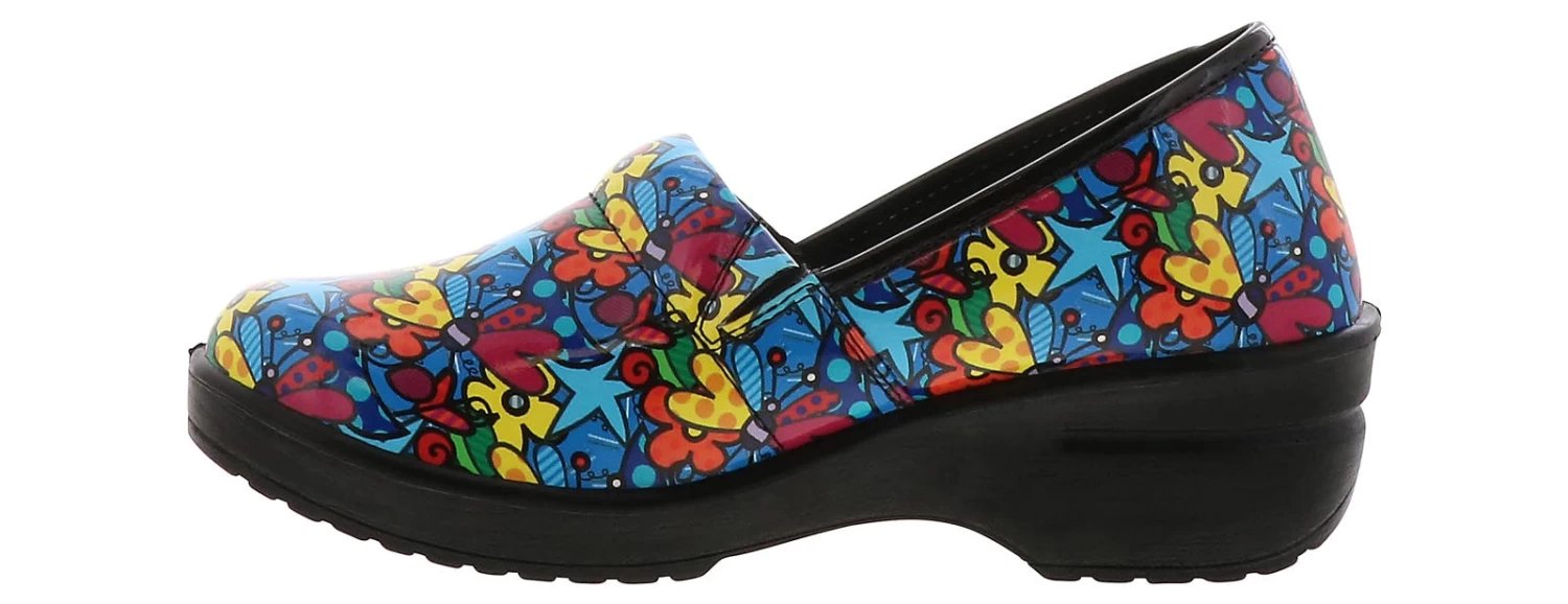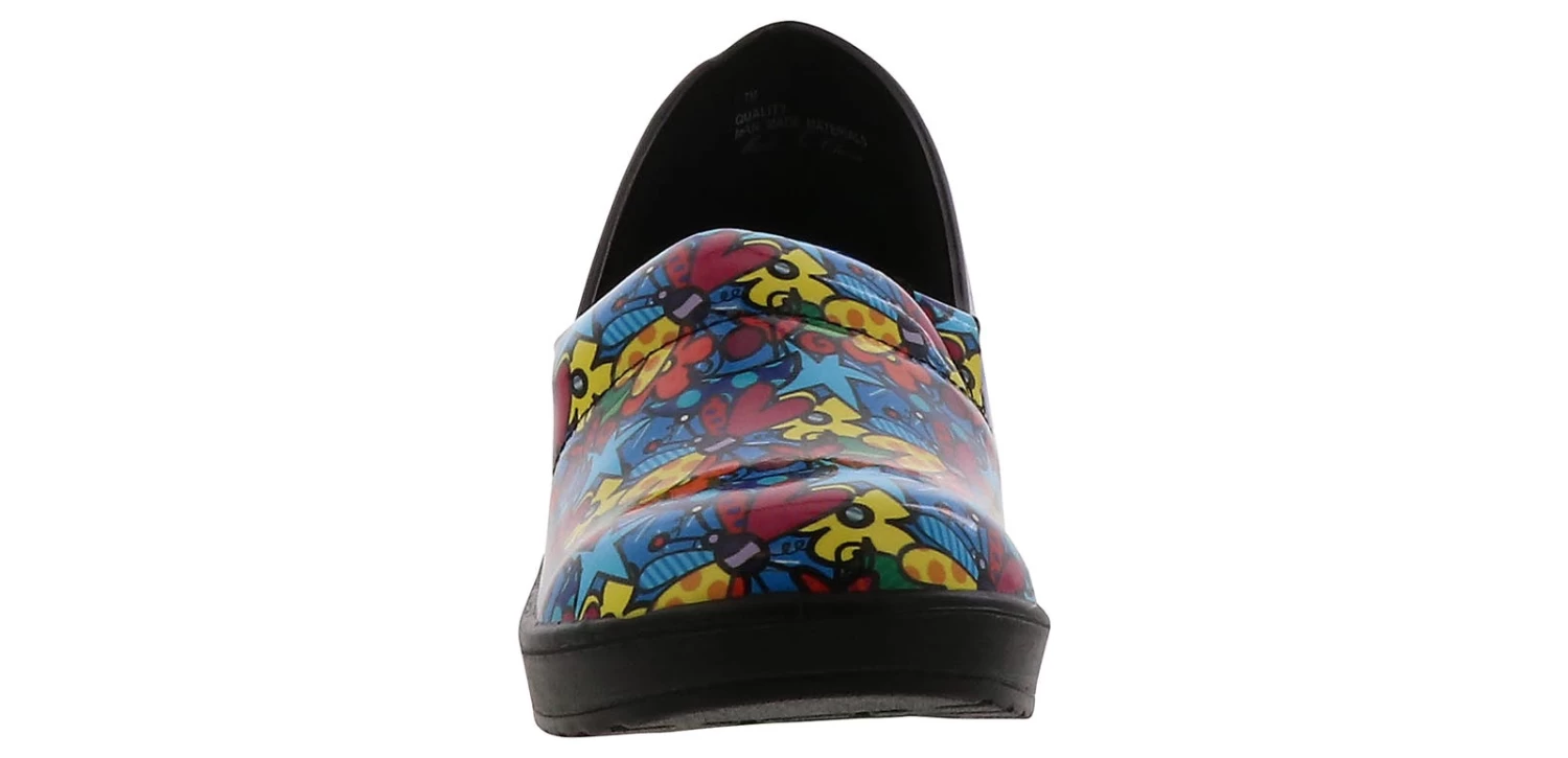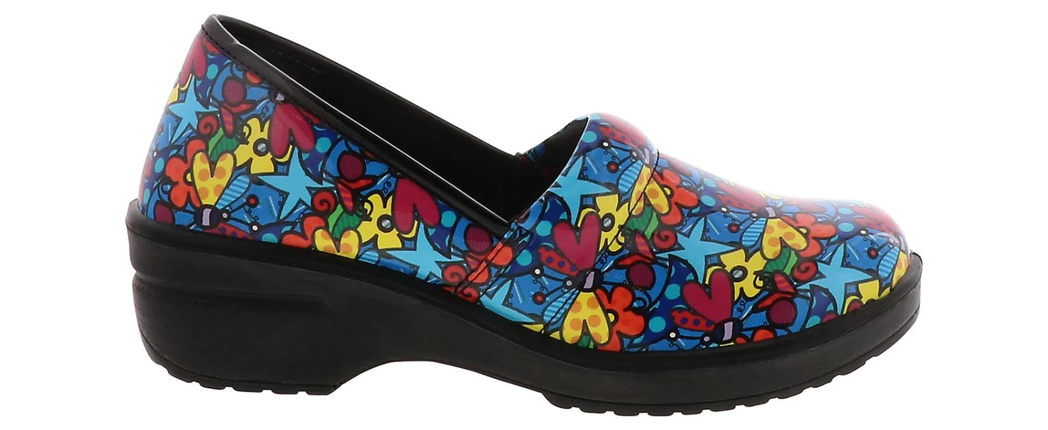 Get your spring on with the Easy Works Laurie Trendy Garden Patent Women’s Work Clog! This slip-resistant work clog features a non-marking, rubber outsole and a cushioned, stress-reducing insole. The fun-colored garden design will brighten your days when you step out in the Easy Works Laurie Trendy Garden Patent Women’s Work Clog!