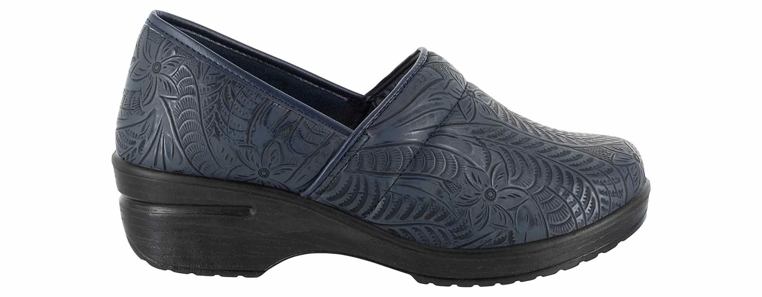 Complete a casual workday outfit with the Easy Works Lyndee Women’s Work Shoe! This style was made to keep every move comfortable with the EasyMotion Pro-Comfort System, where the orthotic styling meets anti-fatigue comfort technology. The removable anti-microbial footbed delivers impact-absorbing arch support, while the lightweight EVA outsole absorbs shock with every landing. The manmade leather upper is decorated with a unique tool pattern that will complete your look. The Easy Works Lyndee Women’s Work Shoe makes it simple to stay comfortable during your day!