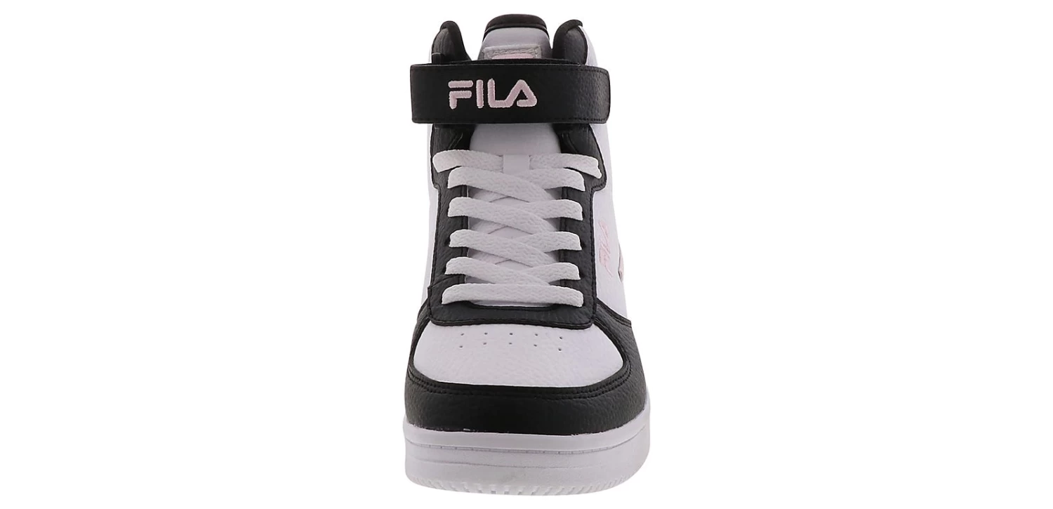 Keep it stylish with the Fila A-High Women’s Court Style Sneaker! This high-top synthetic sneaker features a hook-and-loop closure and a lace-up front for an extra secure fit. Classic black and white colors make it easy to pair the Fila A-High Women’s Court Style Sneaker with any outfit!