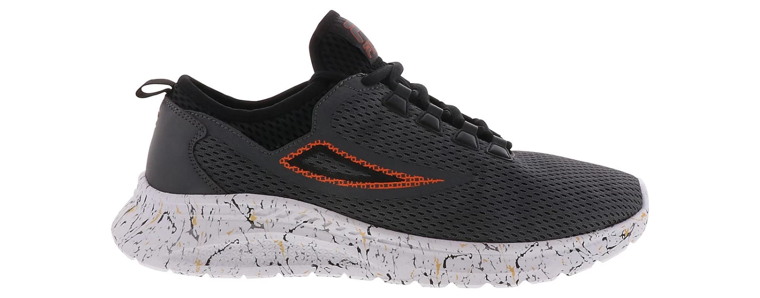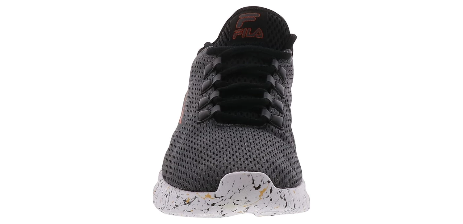 Start kicking it in fashionable athletic style with the Fila Memory Neometric Marble Men’s Running Shoe! This grey, orange, and black lace-up style features a breathable mesh upper and mesh lining to breeze through your workouts. The cushioned insole and padded collar add comfort to the lightweight Fila Memory Neometric Marble Men’s Running Shoe!