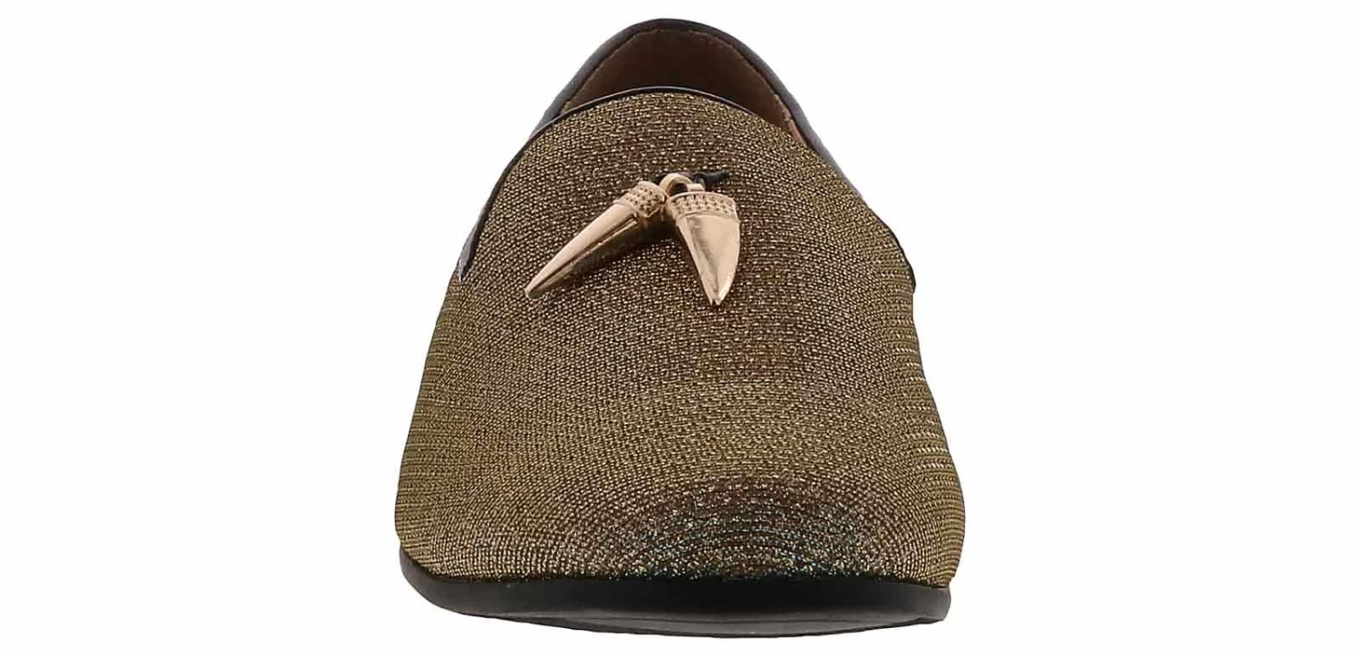 Step out in a unique and flashy style with the Giorgio Brutini Collide Gold Smoker Men’s Fashion Shoe! This sparkly gold slip-on features gold charm details and a cushioned insole with a memory foam heel. The Giorgio Brutini Collide Gold Smoker Men’s Fashion Shoe will make you shine in every room!