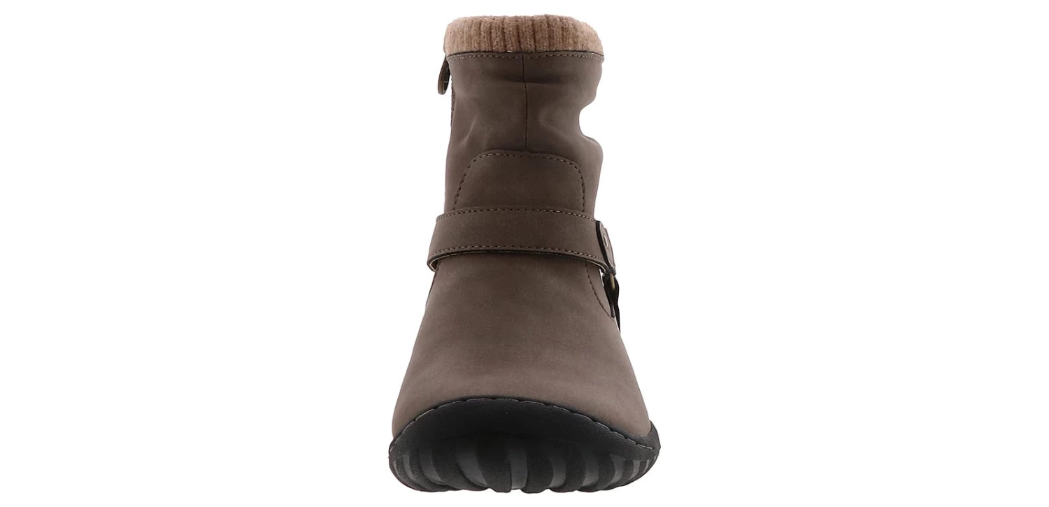 Rock an effortless style in the JBU By Jambu Westwood Women’s Fashion Boot! This distressed vegan leather boot has so much to love, including its faux fur and sweater knit cuff details. The motorcycle boot-inspired harness detail gives this water-resistant boot a unique flair. Enjoy all seasonal festivities in the JBU By Jambu Westwood Women’s Fashion Boot!