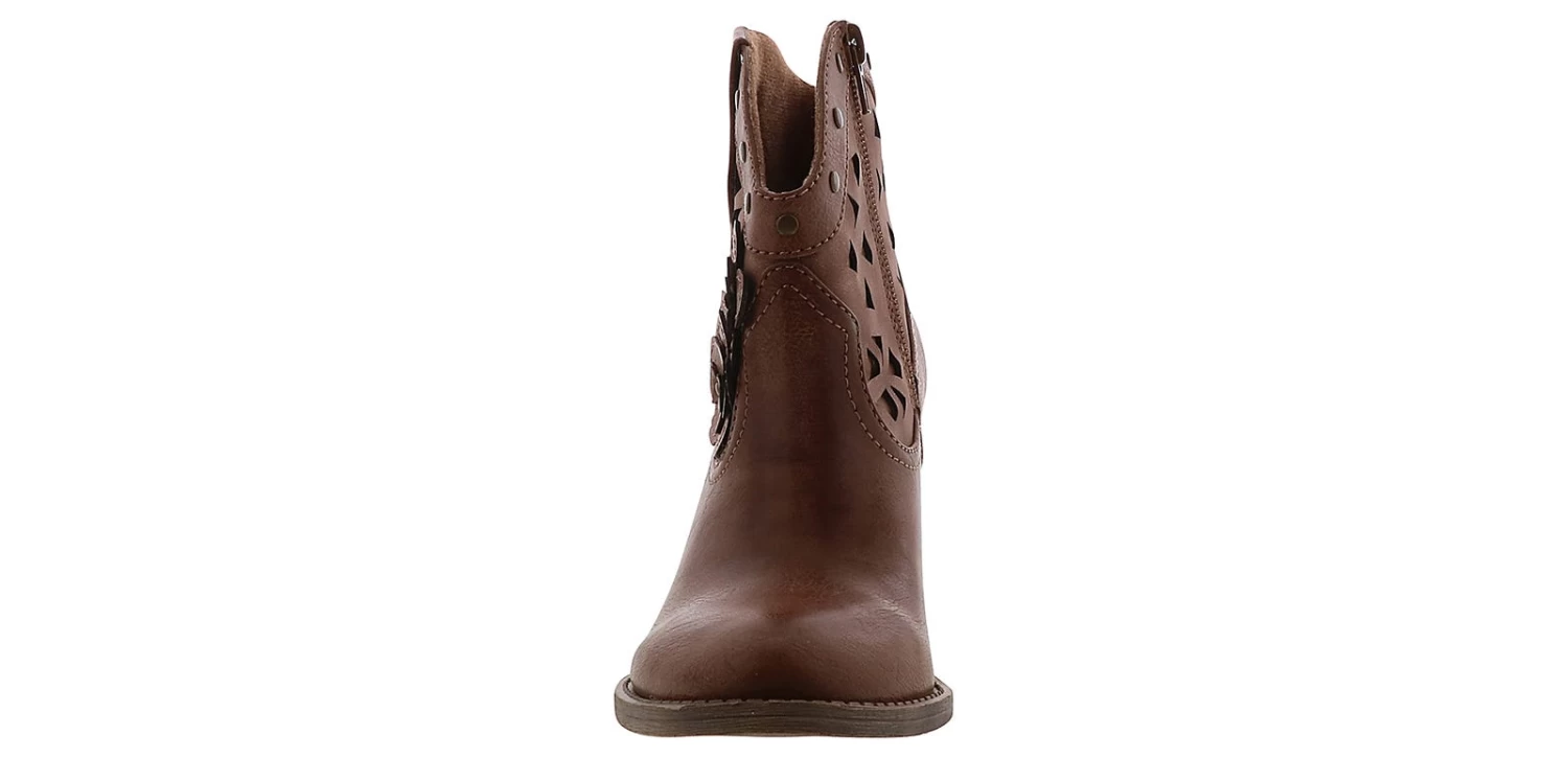 You will rock the Jellypop Jackyl Women’s Fashion Boot! This style has geometric cut-outs, small brass buttons, and flower applique on the synthetic leather upper with an almond-shaped toe. You will love to wear these 2 1/2 inch heel booties with jeans or a skirt. The Jellypop Jackyl Women’s Fashion Boot will be your new favorite boot!