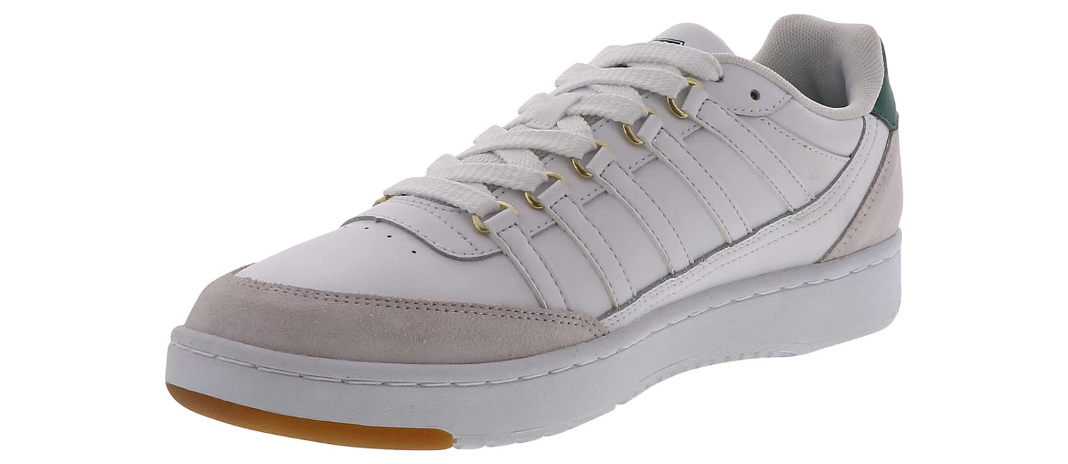 Start kicking it in the K-Swiss Set Pro Men’s Court Sneaker! This lace-up sneaker features a synthetic leather upper with gold eyelets. The rubber outsole ensures traction, while the cushioned insole provides comfort to your feet. Step onto the court with the K-Swiss Set Pro Men’s Court Sneaker!