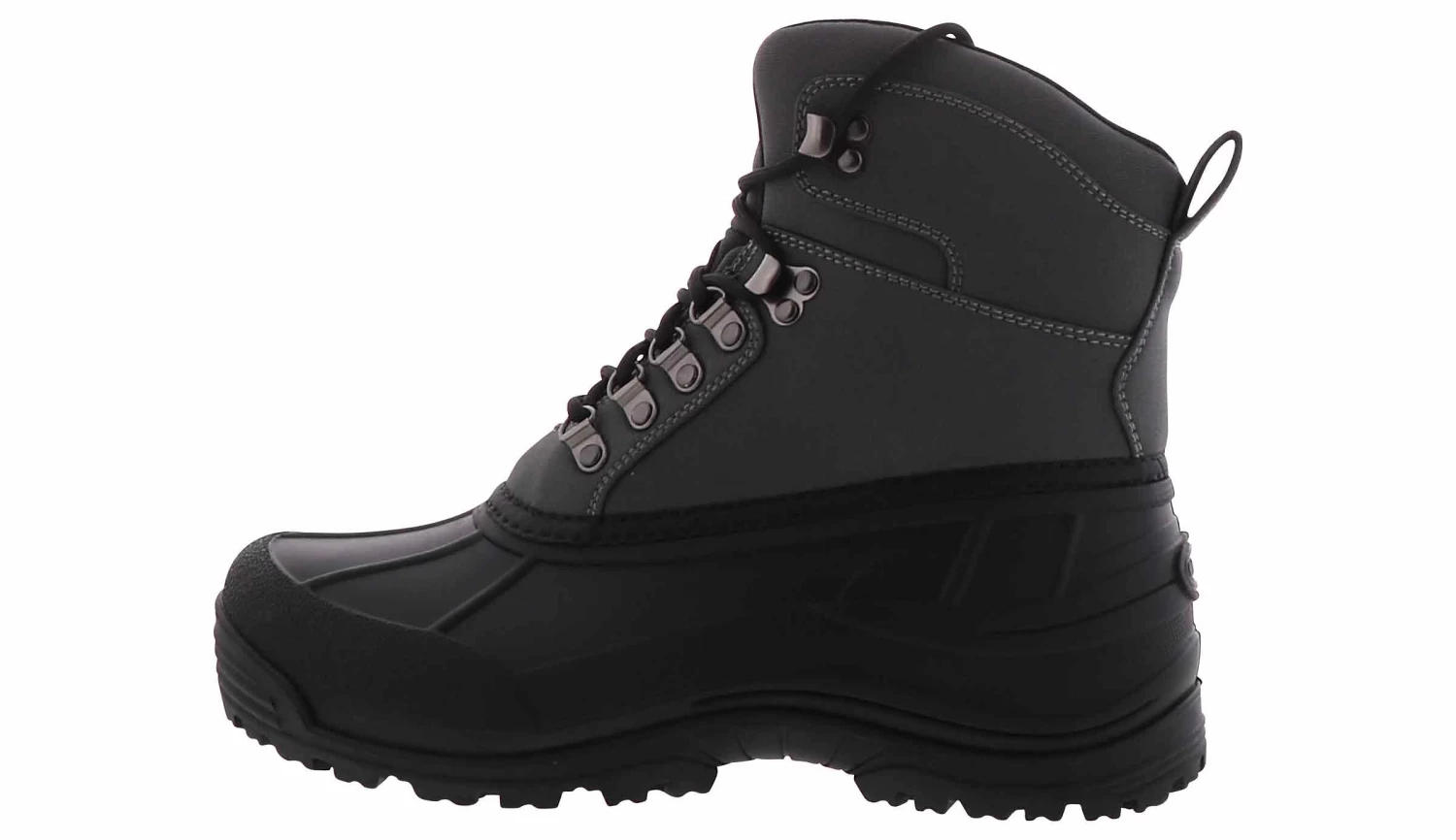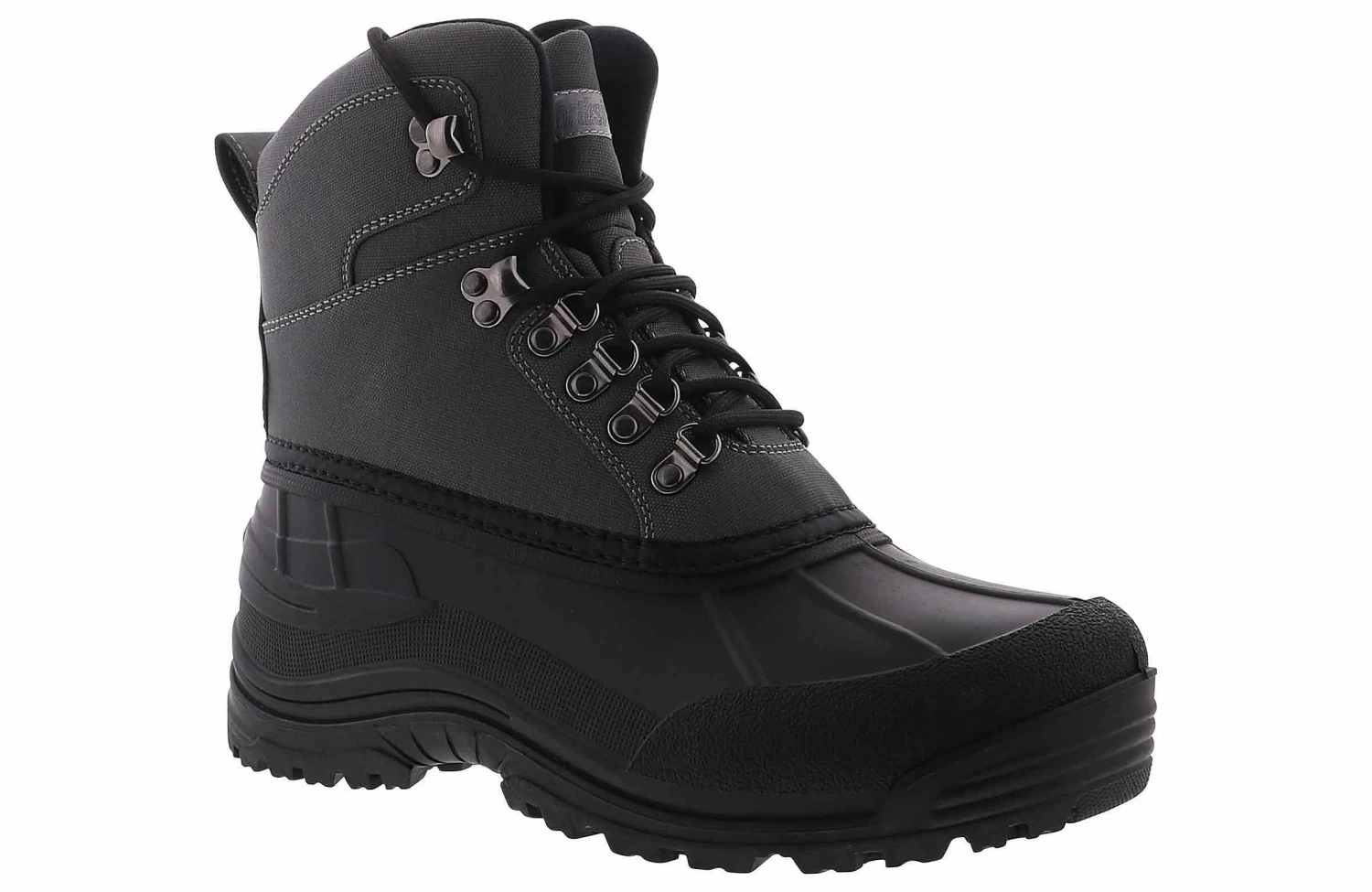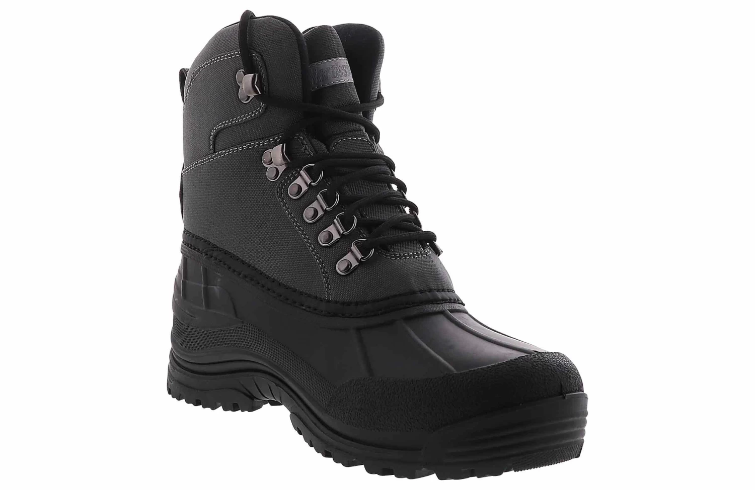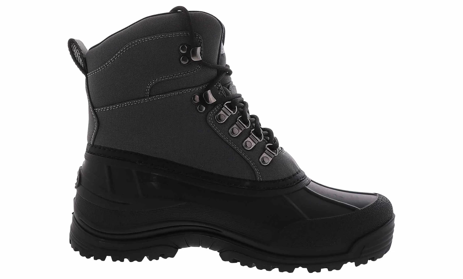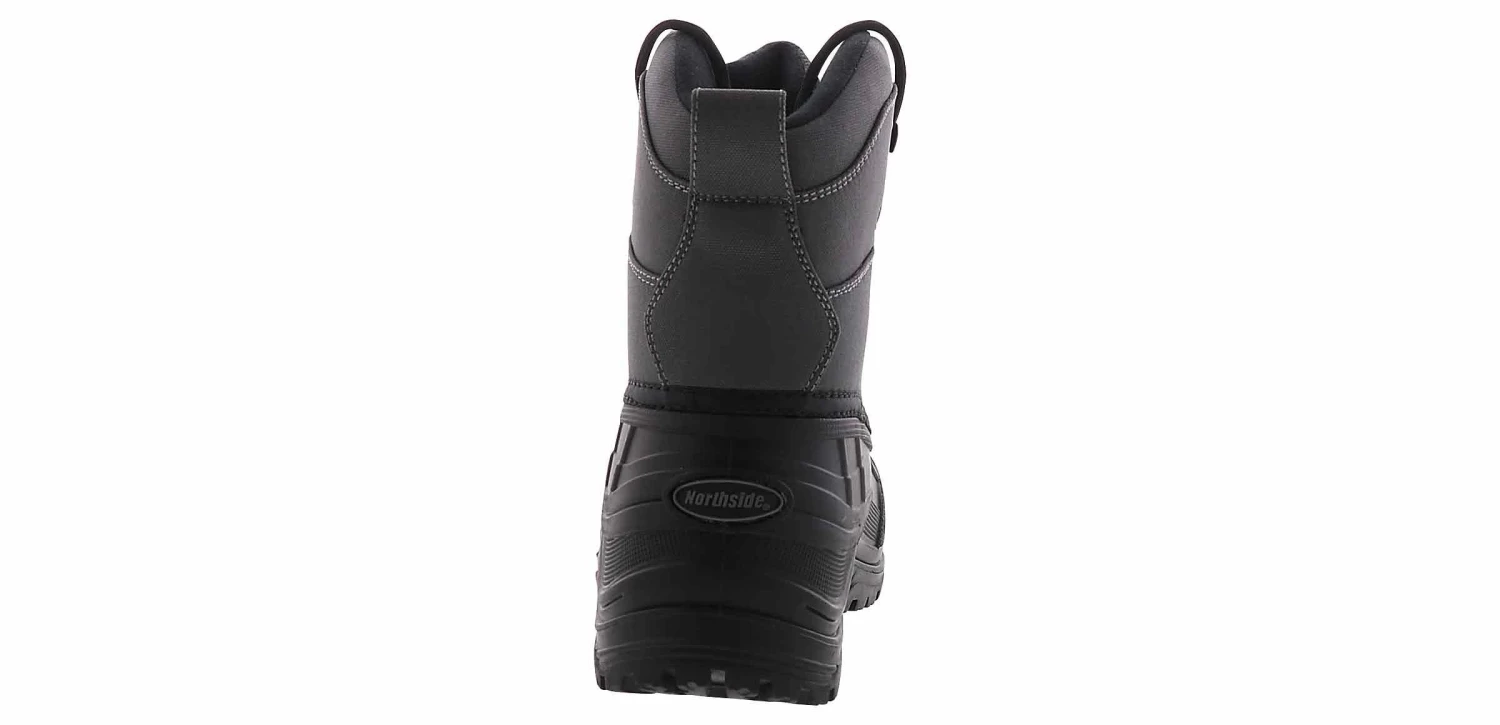 Face the rain or snow wearing the Northside Glacier Peak Men’s Weather Boot! This durable snow boot features a lace-up water-resistant nylon upper with a rubber shell. The padded collar and tongue will keep debris out and give your foot a secure fit. The cushioned, faux Sherpa-lined insole ensures you will stay warm, and the rubber outsole gives traction in wet and icy conditions.