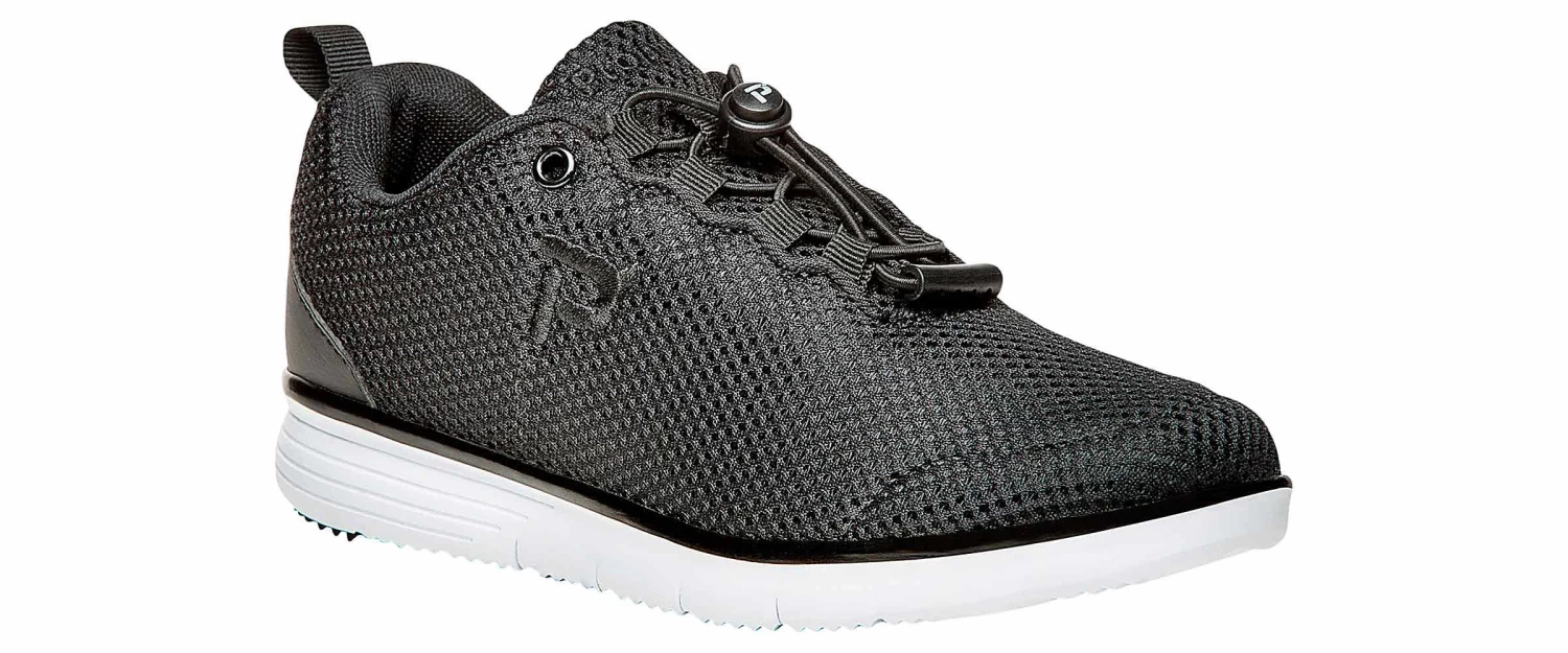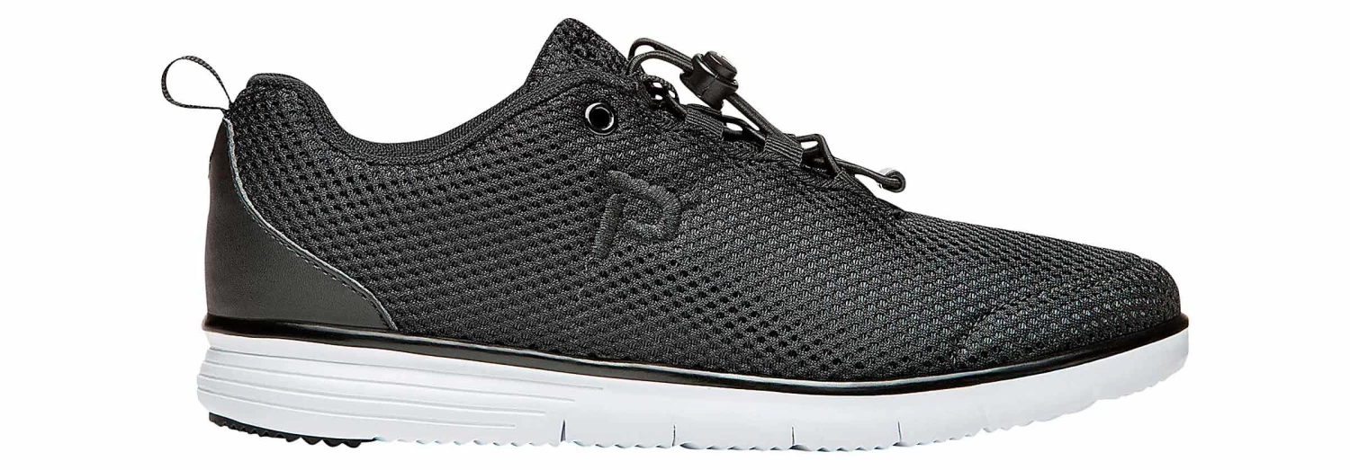 The Propet TravelFit Prestige Women’s Sneaker has a soft mesh upper with mesh lining and a firm heel counter for support and comfort. Breathable open cell PU with added heel cushion moves moisture from foot for a cooler, healthier footbed. Lightweight, flexible EVA midsole with rubber inserts for traction.