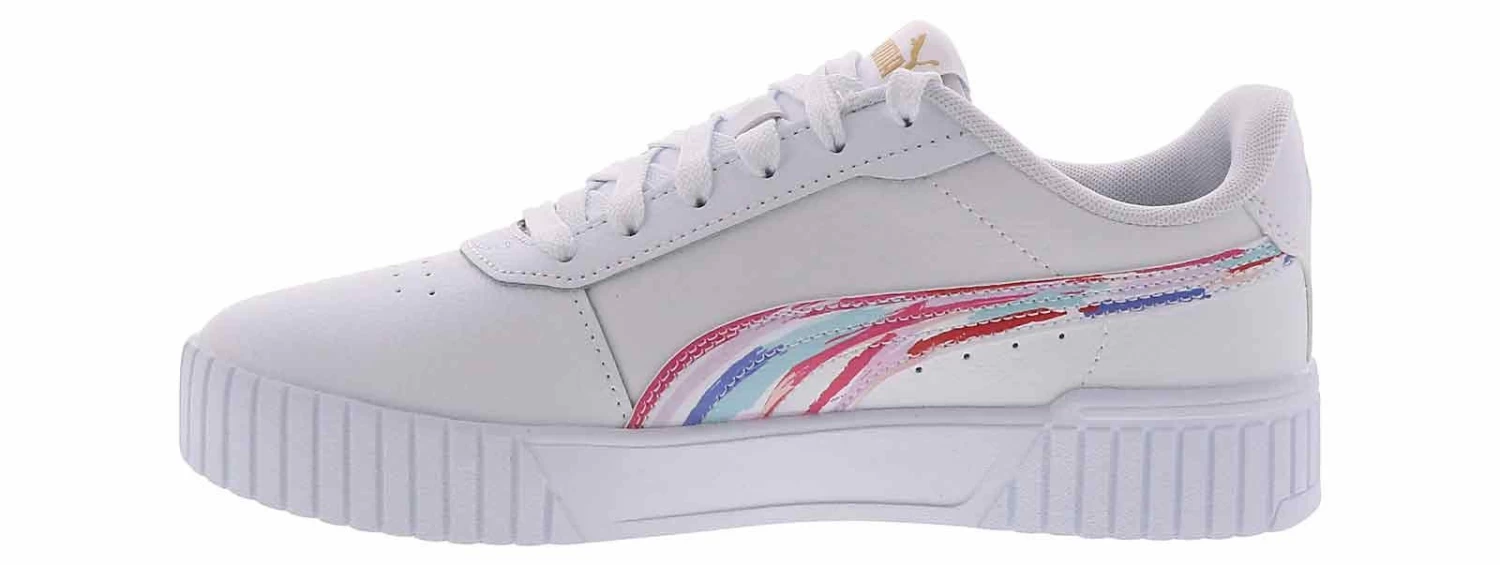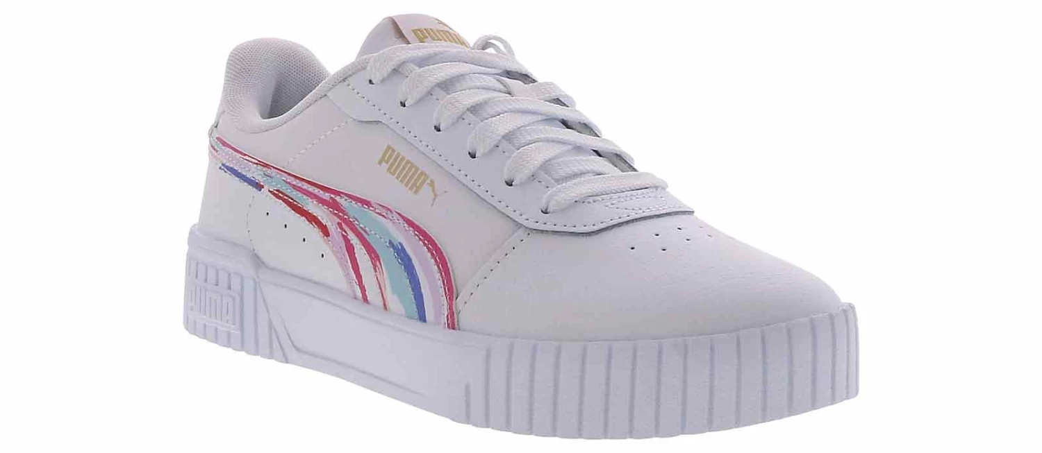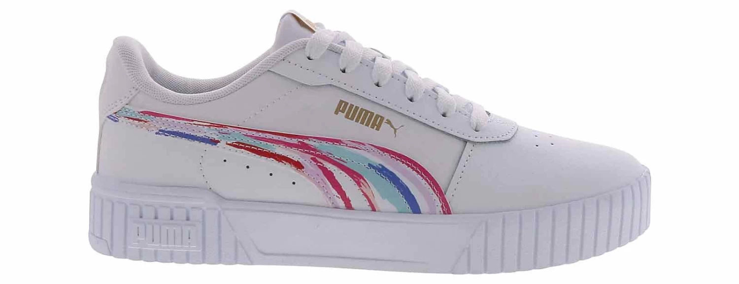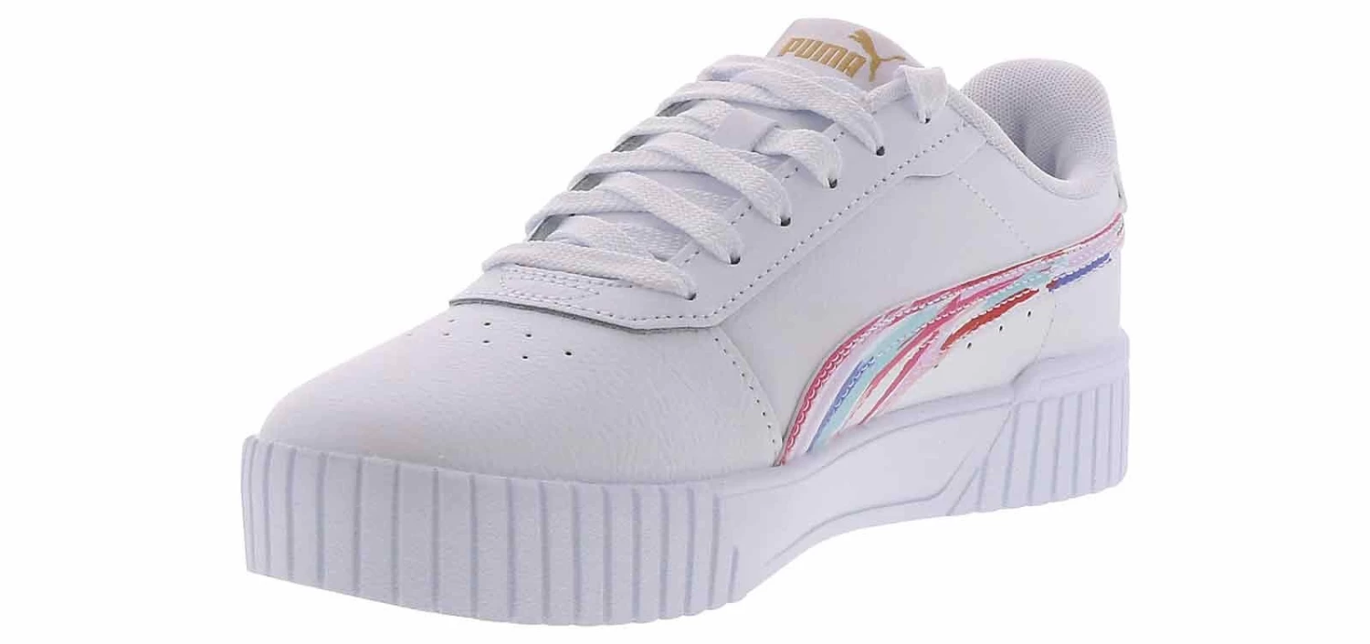 Brush up on your athletic style with the Puma Carina 2.0 Brushed Women’s Court Sneaker! This synthetic leather lace-up features a cushioned insole and a padded heel to keep you comfortable all day, while the durable rubber outsole provides traction and grip. Add a little color to your everyday outfits with the Puma Carina 2.0 Brushed Women’s Court Sneaker!