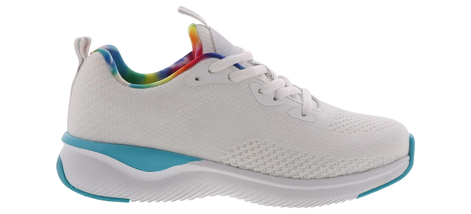 Keep life colorful with the Shaq Jensen Women’s Wide Width Athletic Shoe! This knit and mesh lace-up style features a memory foam insole and a lightweight outsole that your feet will love. The multicolored tie-dye mesh lining allows for breathability and fun when you wear the Shaq Jensen Women’s Wide Width Athletic Shoe!