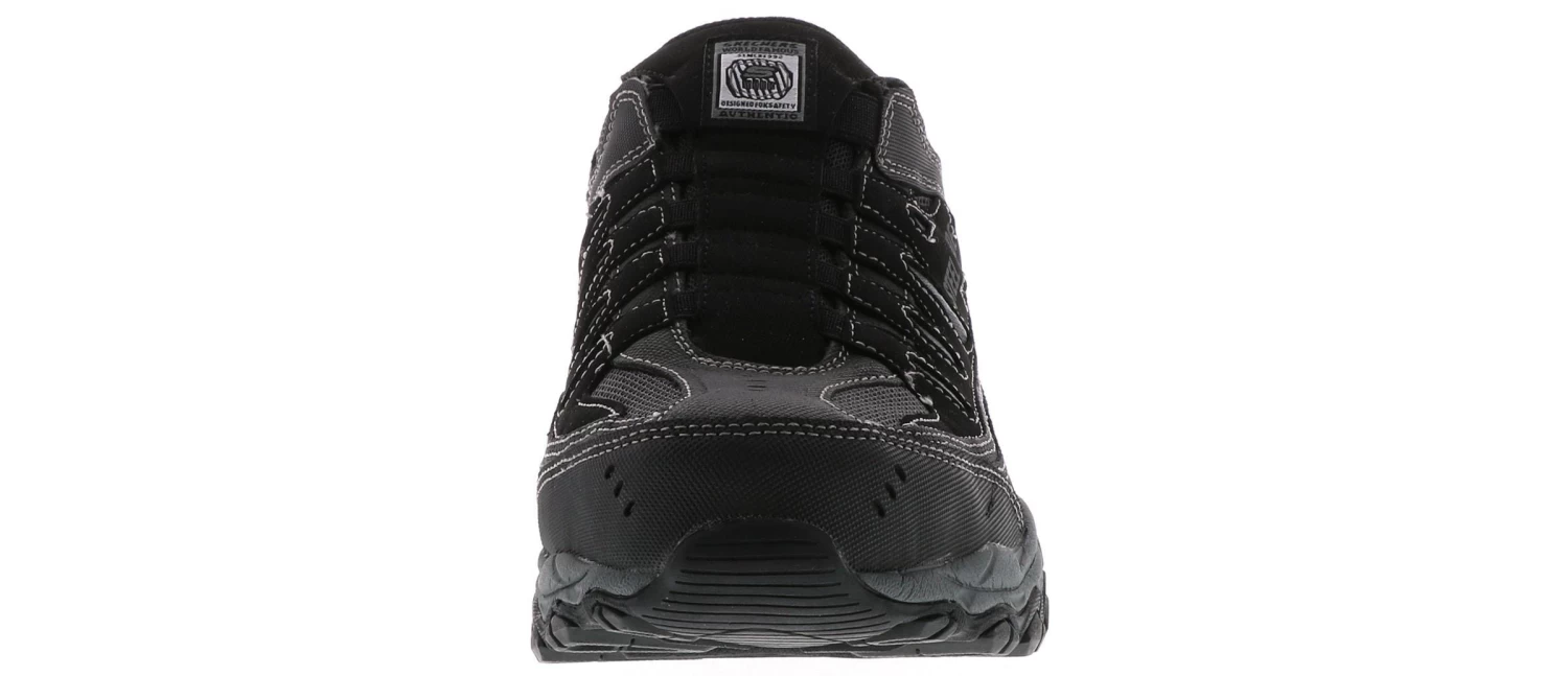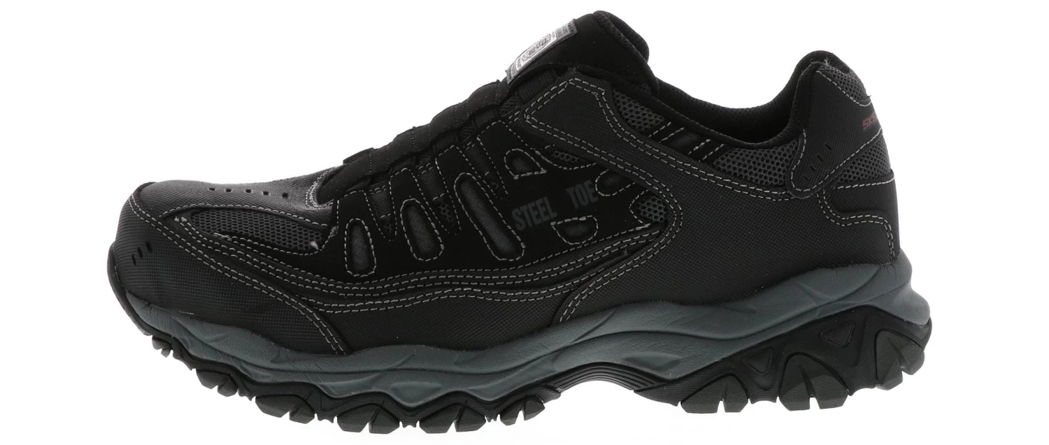 Take the easiest route to protection, comfort and style with the Skechers Work: Cankton – Ebbitt steel toe shoe. Durable leather, synthetic and mesh fabric upper in a slip on casual steel toe work sneaker with stitching and overlay accents. The Skechers Cankton Ebitt work shoes have a Memory Foam insole.