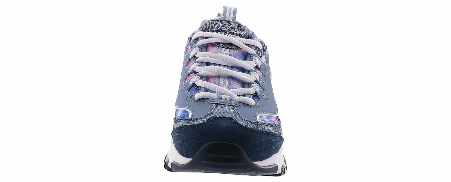 Get walking with the Skechers D’Lites Denim Women’s Walking Shoe! The synthetic upoper is super trendy and colorful. The AIr-Cooled memory foam insole provides extra support and the rubber outsole is great for traction.You will love the style of the Skechers D’Lites Denim Women’s Walking Shoe!