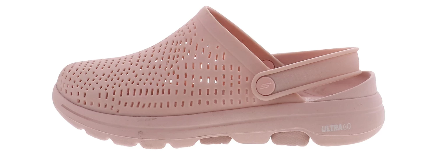Stay comfortable and breathable wherever you go wearing the Skechers Go Walk 5 Women’s Clog! This slip-on features an EVA upper with holes for ventilation and a rotating heel strap for extra support. The Skechers Foamies footbed delivers soft cushioning, while the ULTRA GO outsole provides traction and support on all surfaces. Walk the distance with comfort and style wearing the Skechers Go Walk 5 Women’s Clog!