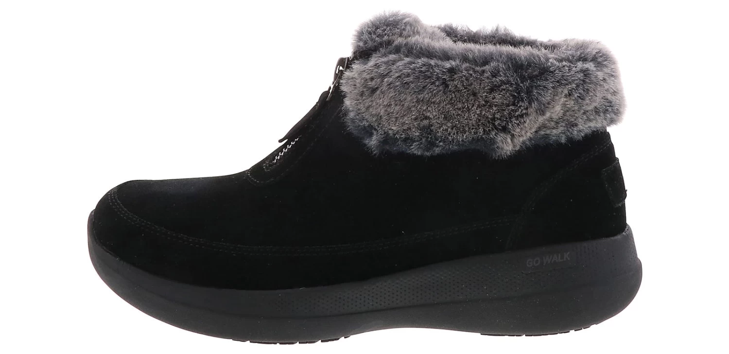 Enjoy comfort and support on your long walks with the Skechers Go Walk Stability Women’s Width Fashion Boot! This shoe features a smooth upper with faux fur lined to keep your feet warm all day. The zipper closure makes it perfect for easy slip-on and off. The Goodyear rubber outsole stabilizes your walk and adds traction to every surface. The air-cooled goga mat insole adds comfort like no other. Skechers Go Walk Stability Women’s Wide-Width Fashion Boot will be your new go-to shoe!