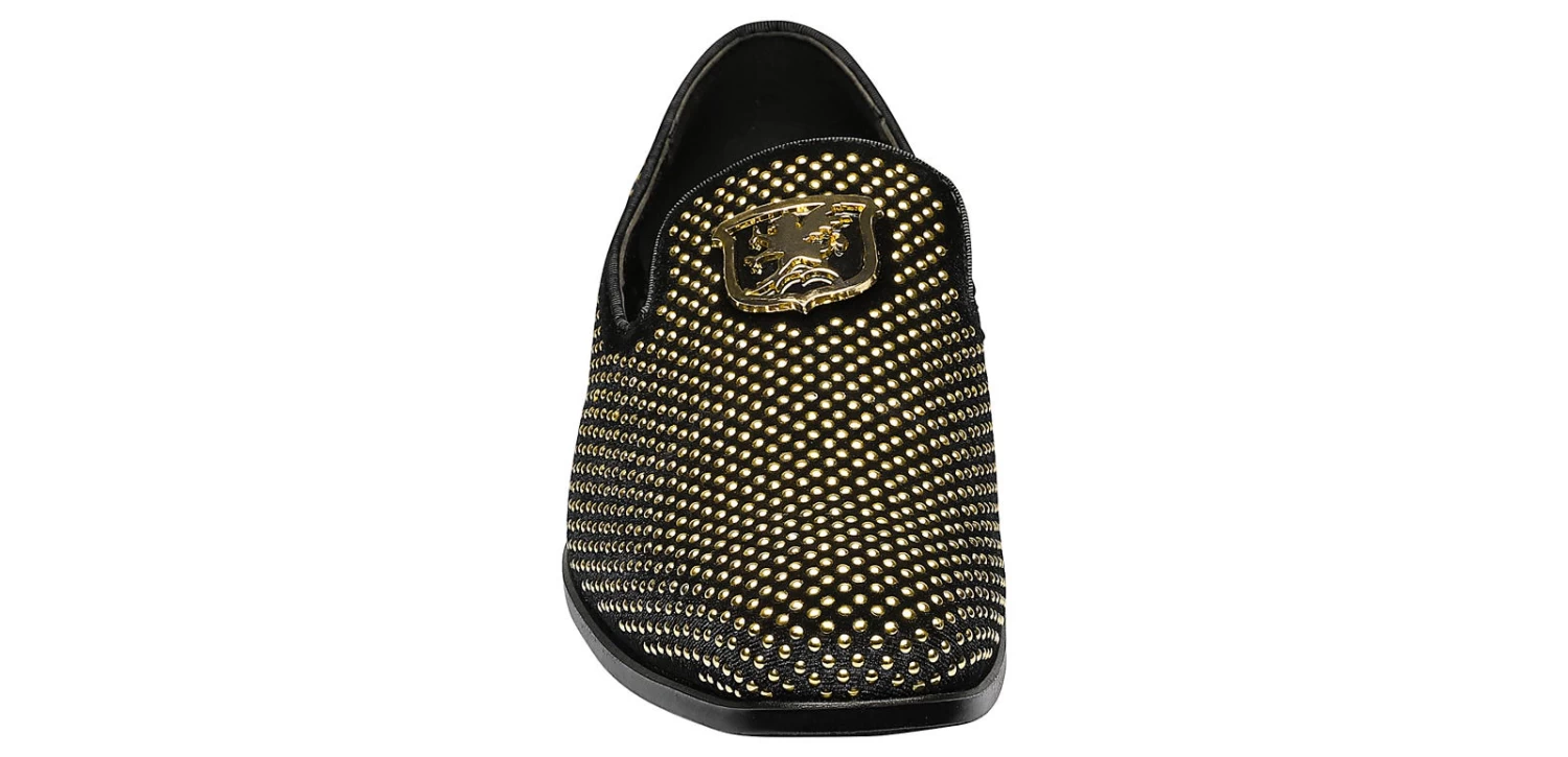 Leave no head unturned. The Stacy Adams Swagger Studded Slip On features a fabric upper covered from heel to toe in dazzling studs. The dress style sole and sleek profile is topped off with the famous Stacy Adams crest. Go ahead, get your Swagger on.